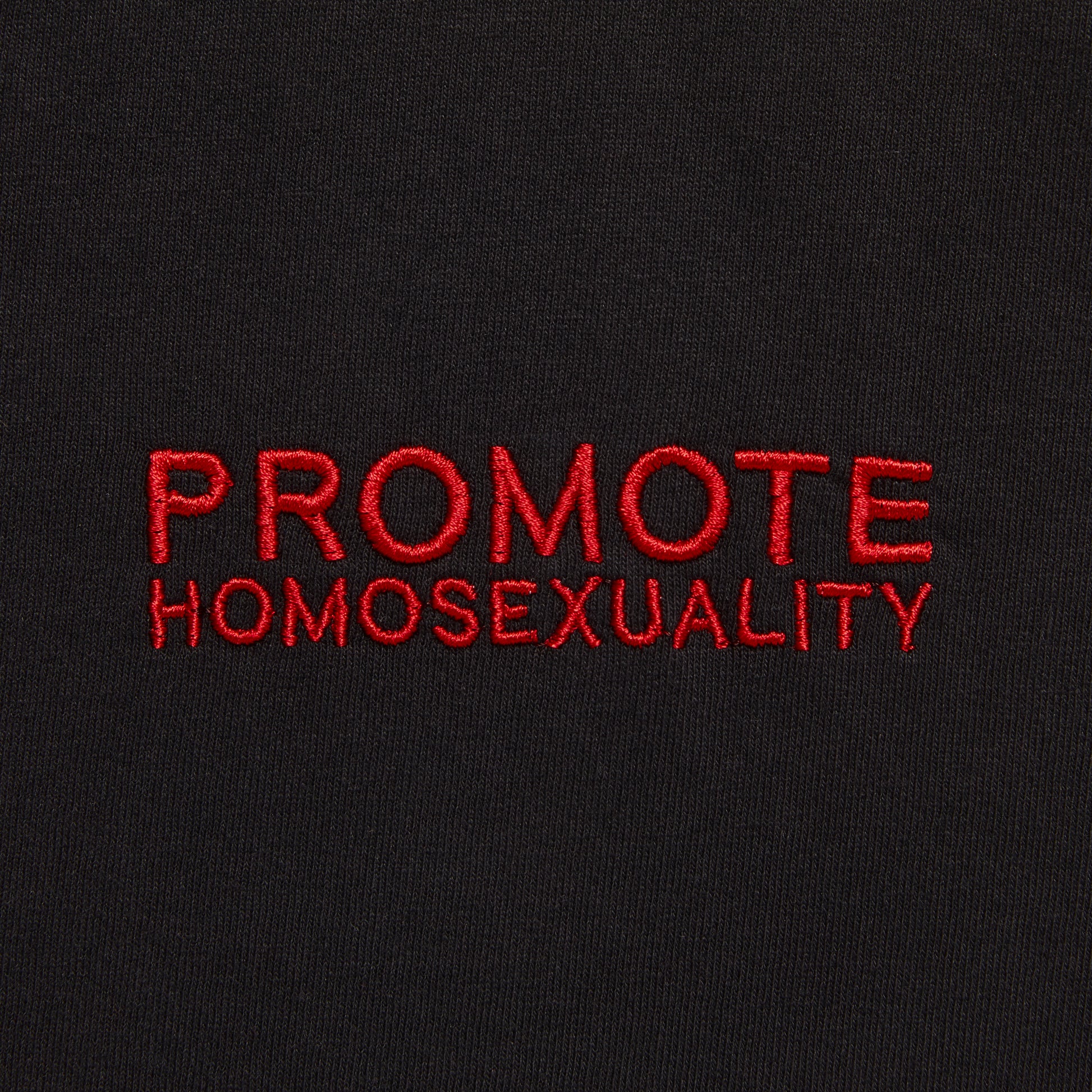 PROMOTE HOMOSEXUALITY EMBROIDERED LONG-SLEEVE T-SHIRT IN BLACK/RED